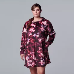 Plus Size Simply Vera Vera Wang Velour Long Sleeve Hooded Sleepshirt