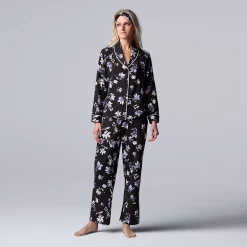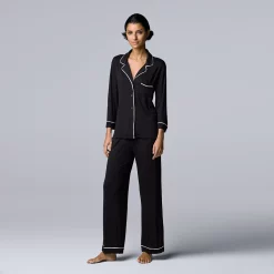 Women’s Simply Vera Vera Wang 3/4 Sleeve Pajama Top and Pajama Pants Sleep Set with Satin Trim