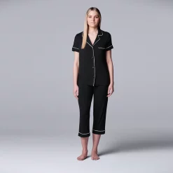 Women’s Simply Vera Vera Wang Basic Luxury Notch Collar Pajama Shirt & Pajama Capris Set