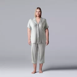 Plus Size Simply Vera Vera Wang Basic Luxury Pajama Shirt & Pajama Capris Set