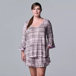 Plus Size Simply Vera Vera Wang 3/4 Sleeve Pajama Top & Pajama Boxer Shorts Set