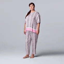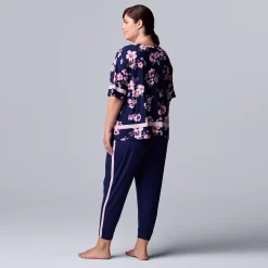 Plus Size Simply Vera Vera Wang Short Sleeve Pajama Top and Cropped Banded Bottom Pajama Pants Sleep Set