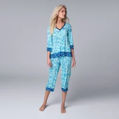 Women’s Simply Vera Vera Wang 3/4 Sleeve Pajama Top and Capri Pajama Pants Sleep Set