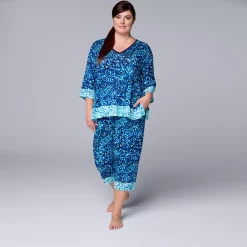 Plus Size Simply Vera Vera Wang 3/4 Sleeve Pajama Top and Capri Pajama Pants Sleep Set