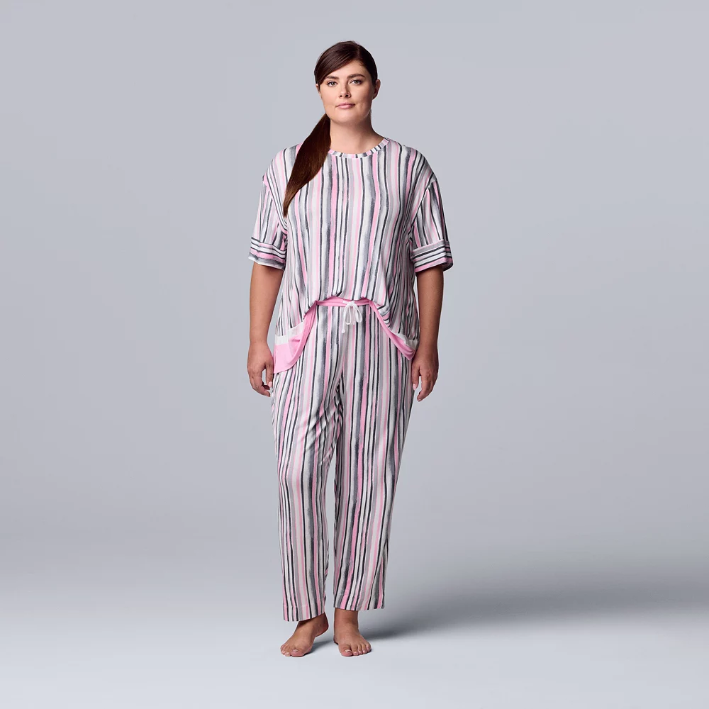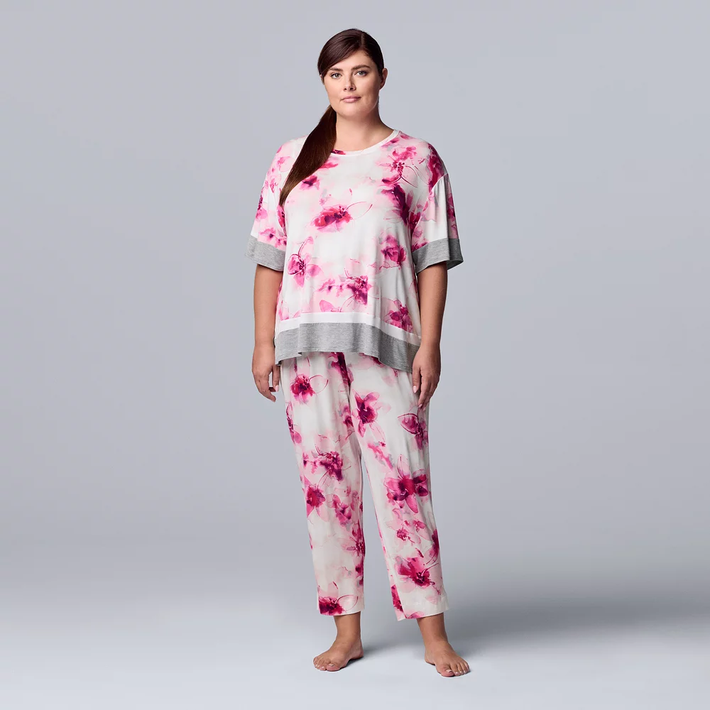 Plus Size Simply Vera Vera Wang Short Sleeve Pajama Top & Cropped Pajama Pants Set