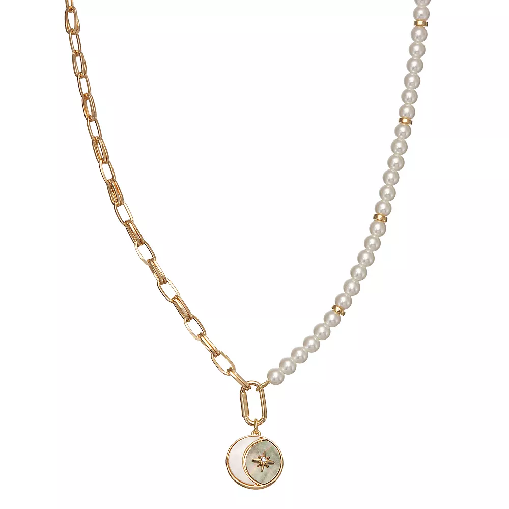 You will love the unique design of this Simply Vera Vera simulated pearl chain celestial pendant necklace.