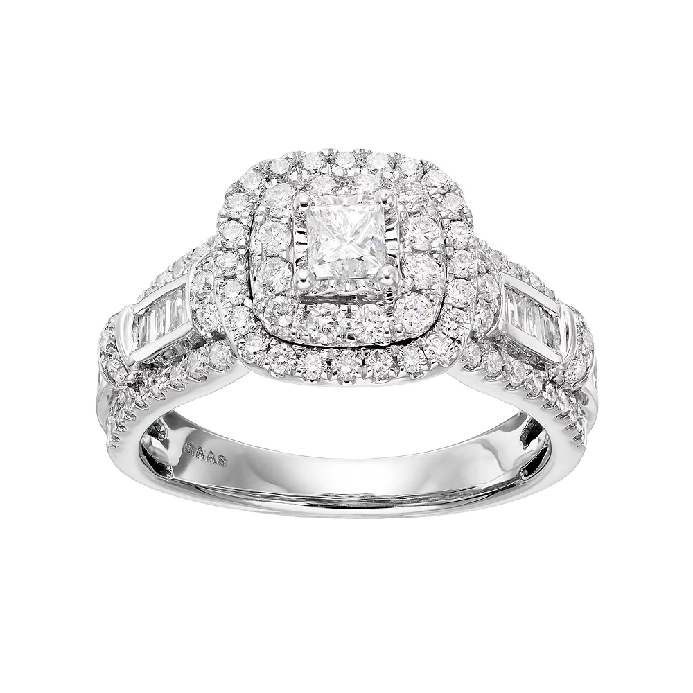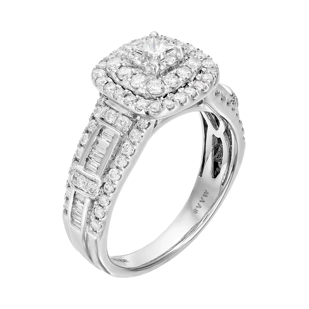 An exquisite symbol of your unconditional love, this Simply Vera Vera Wang engagement ring is bound to be cherished for a lifetime. Accentuated with an array of illuminating diamonds, this 14k white gold square halo engagement ring is altogether beautiful.