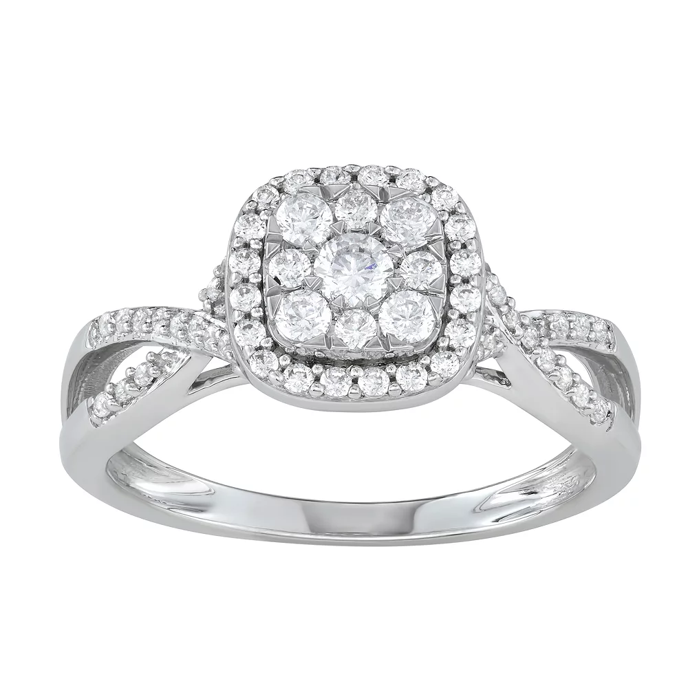 Showcase your love in a beautiful way with this elegant Simply Vera Vera Wang halo engagement ring.