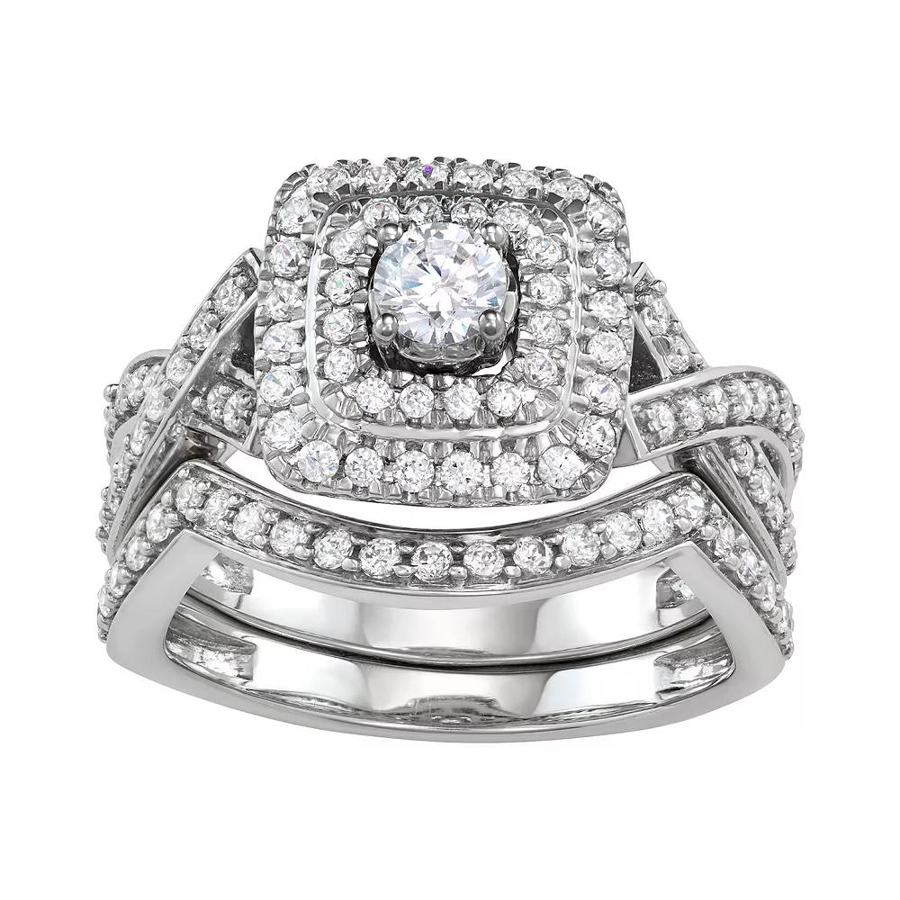 Eye-catching yet elegant, this Simply Vera Vera Wang engagement ring set is sure to take her breath away.