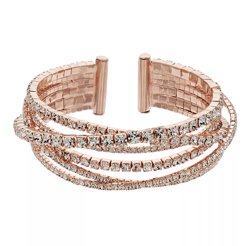 A stack of simulated crystal bands sparkles against skin in this rose gold tone bangle by Simply Vera Vera Wang.