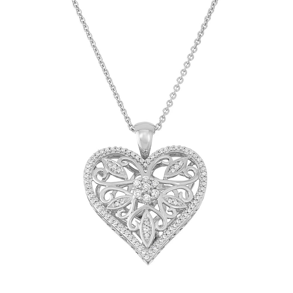 Filigree details and shimmering diamonds give this Simply Vera Vera Wang heart pendant a lovely look.
