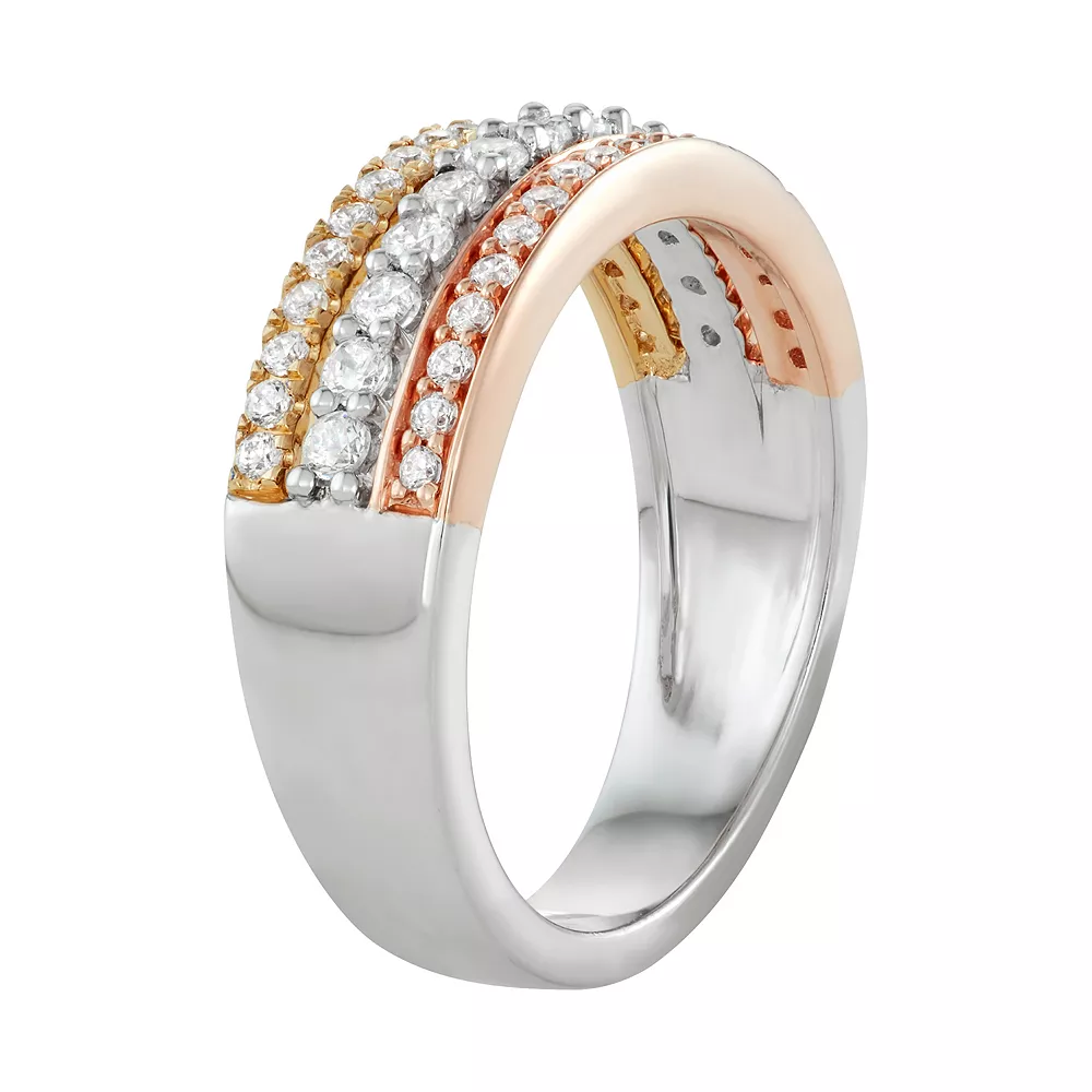 You’re sure to love the distinctive style of this Simply Vera Vera Wang tri-tone 14k gold diamond engagement ring.