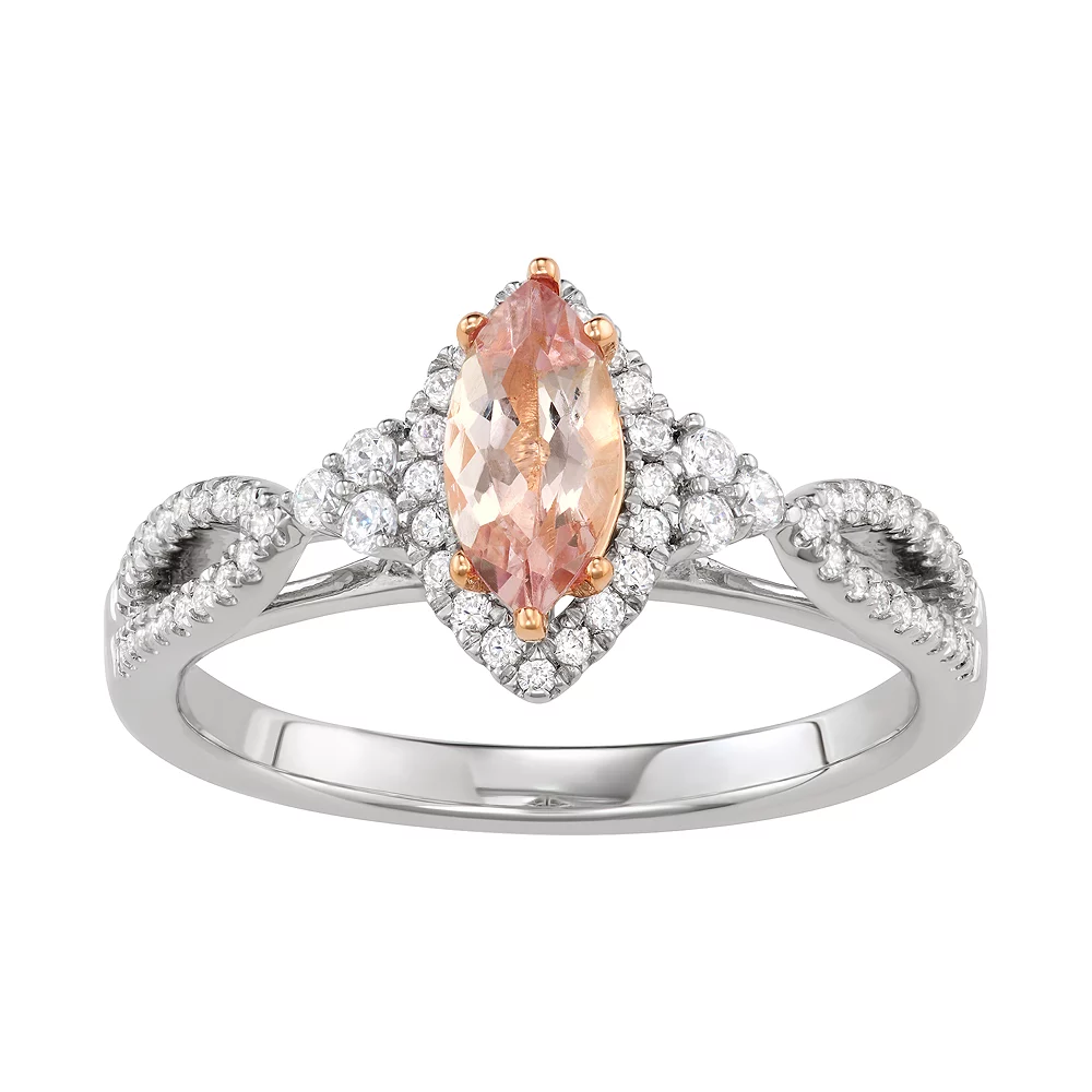 A beautiful, marquise-shaped morganite center stone and scintillating diamond accent stones give this Simply Vera Vera Wang engagement ring an unforgettable look you’ll love.