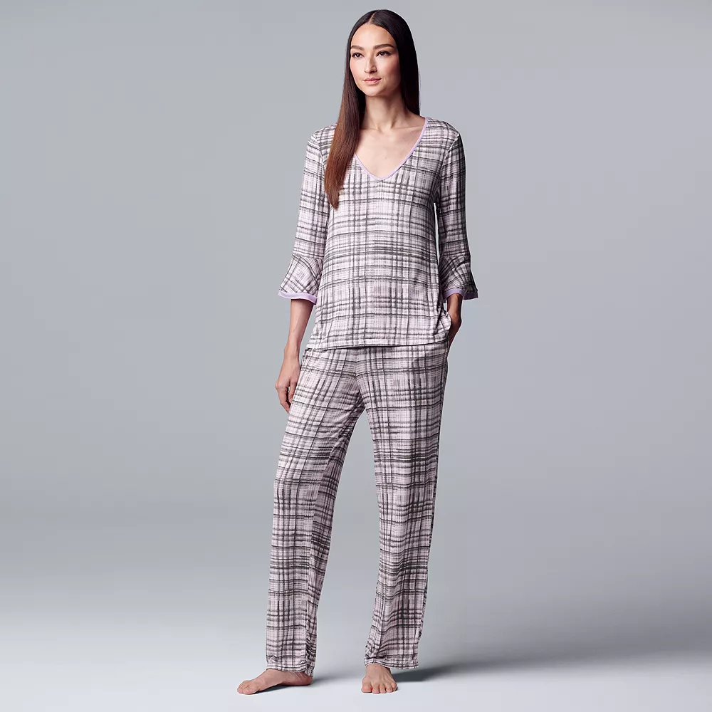Featuring a cozy jersey construction and coordinating look, this women’s Simply Vera Vera Wang pajama set will give you continuous comfort all night long.
