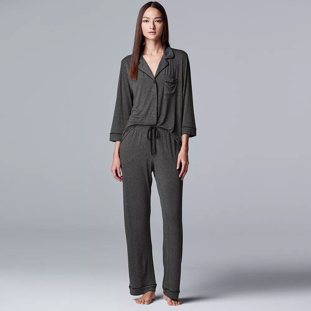 This Simply Vera Vera Wang 3/4 sleeve pajama shirt and pajama pants sleep set will add sophisticated style to your nighttime collection.