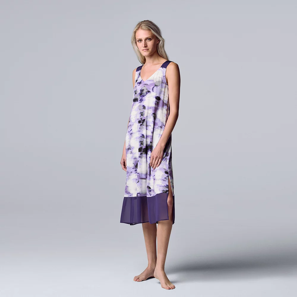 Featuring a luxuriously soft jersey construction with satin and chiffon accents, this women’s Simply Vera Vera Wang chemise abounds with feminine style and comfort.