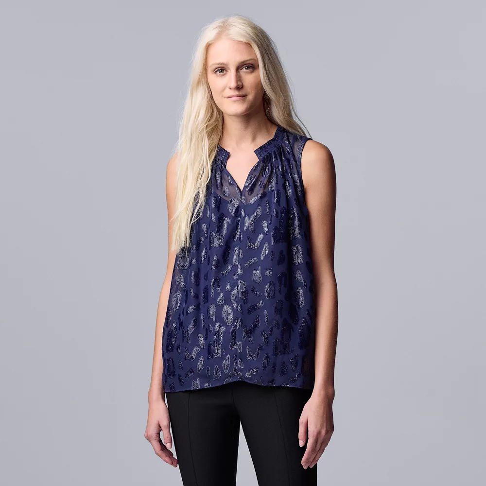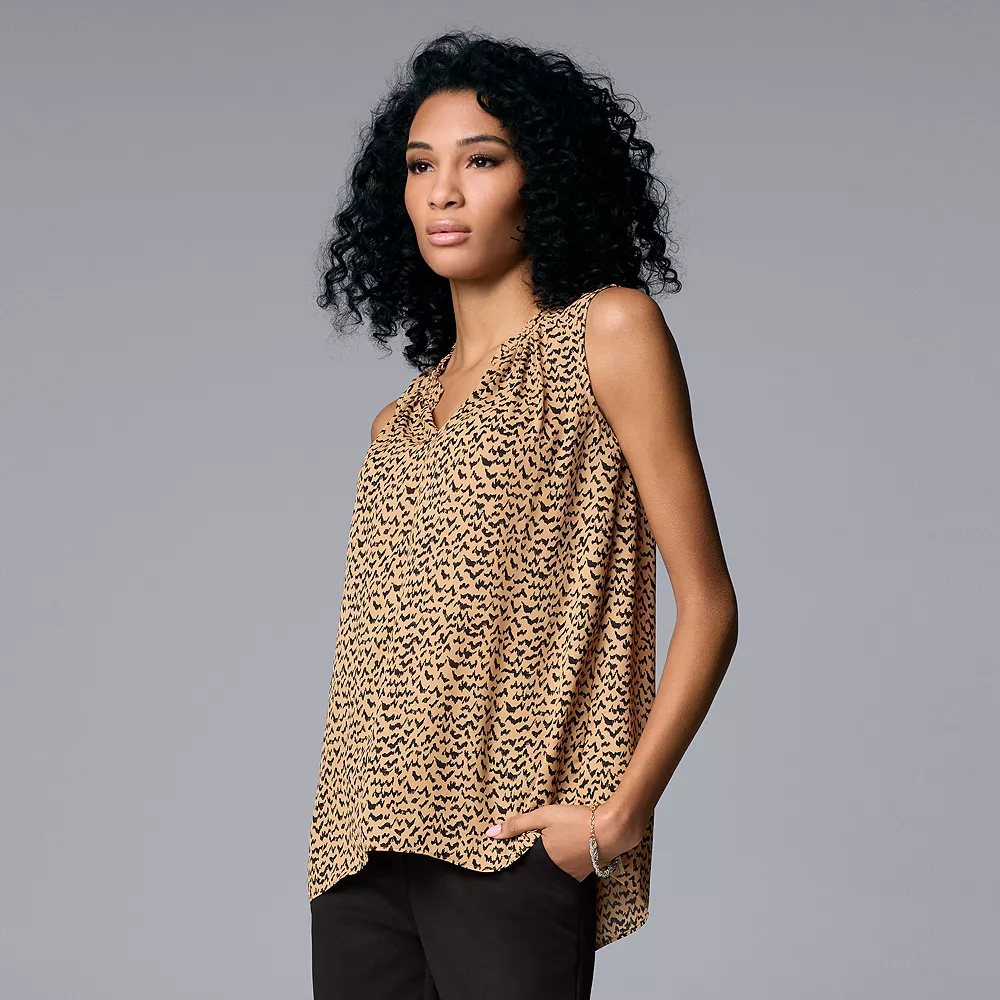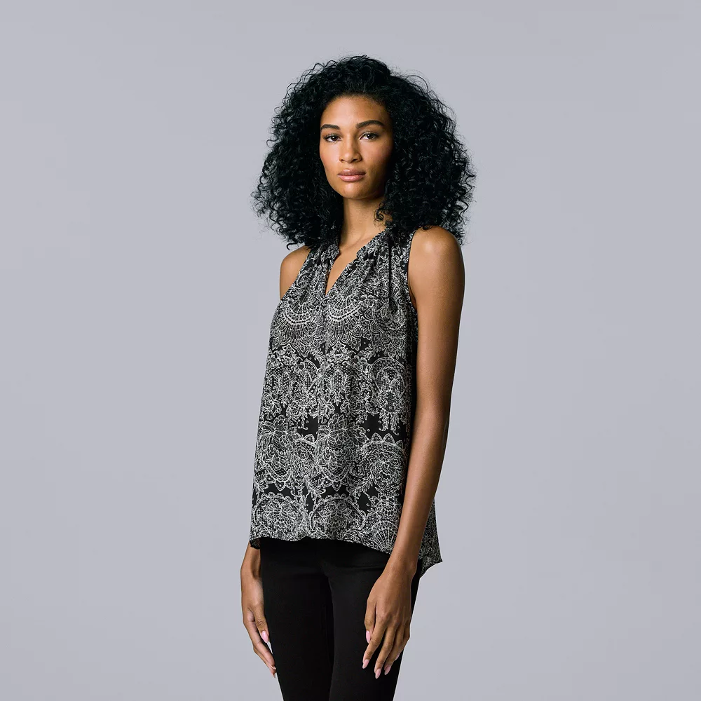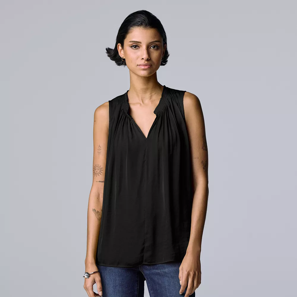 This women’s Simply Vera Vera Wang tank top has a pleated neck and a relaxed fit, ensuring you’ll be cool and comfortable all day long.