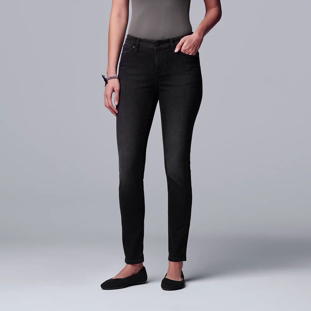 Feel comfortable and look cute in these women’s Simply Vera Vera Wang skinny jeans.